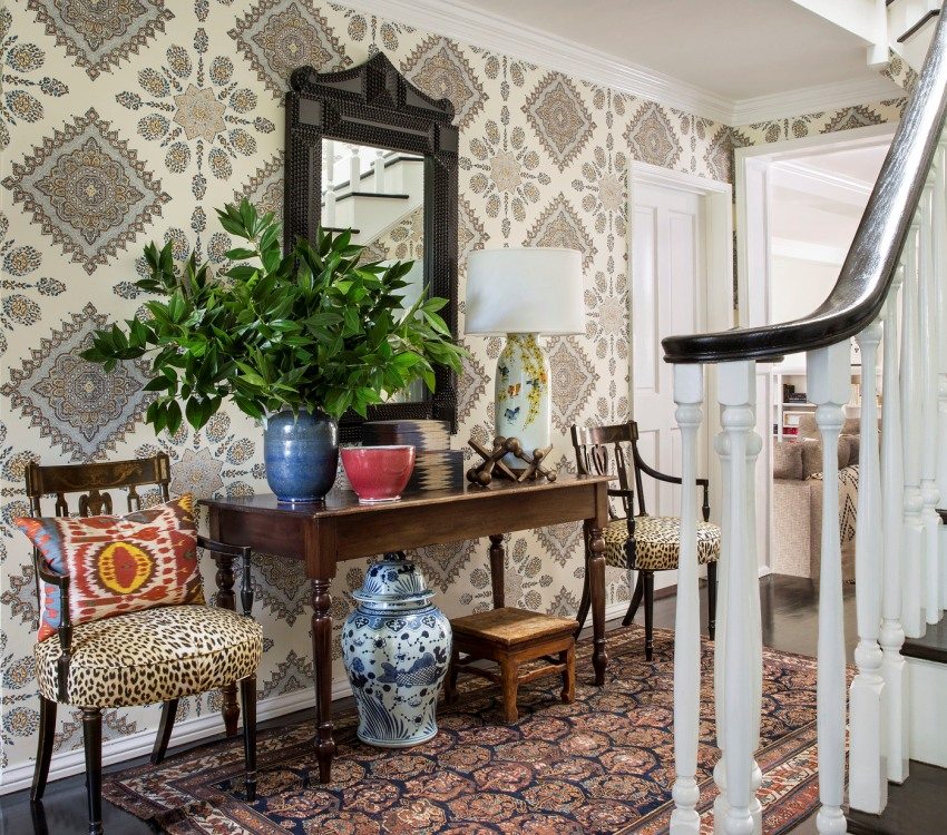 Color and pattern of wallpaper in the design of the hallway (photo of interesting ideas)