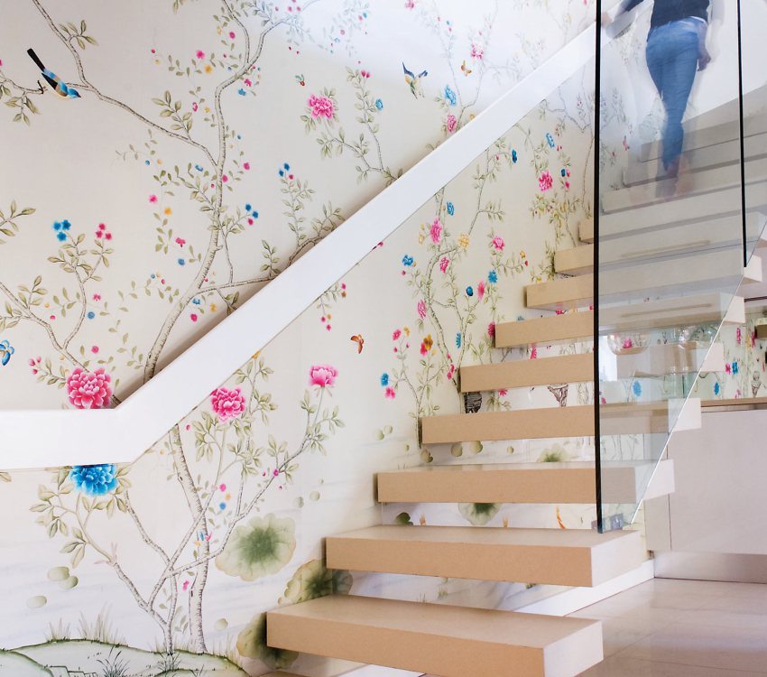 The wall art was created using liquid wallpaper