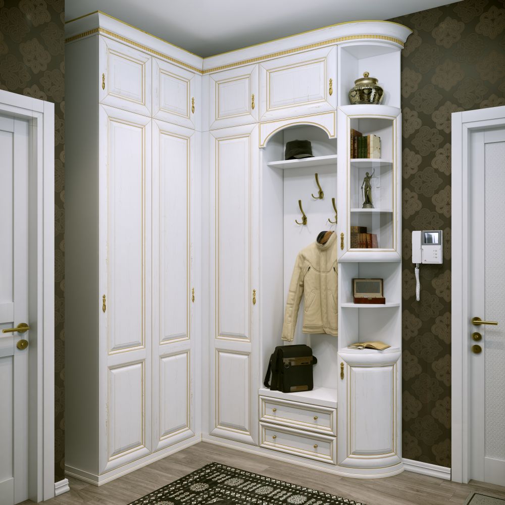 When designing a small space, it is important to correctly use every centimeter of free space in order to make the corridor as ergonomic as possible. A corner hallway can cope with this task. Such furniture is more spacious than usual. When the height of the cabinet reaches the ceiling, being a kind of continuation of the wall, it is possible to maintain the overall unity of the room.