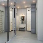As a hallway in a narrow corridor, a wardrobe is perfect, thanks to the door mechanism of which it will be possible to save space. Doors are better to choose translucent, mirror, matte or combined. You can create a storage system with open shelves. Modular furniture will look good, individual elements of which can be placed under the ceiling, which will significantly save space, as the photos of hallways for narrow corridors clearly display.