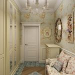 For facing the elements of the room, you can use various finishing materials. Walls can be covered with washing wallpaper, tiles, cork, PVC panels, laminate or decorative plaster. To visually increase the height of the room when decorating the walls, you should use a vertical pattern.To create additional width, a trim with a horizontal ornament will be appropriate. It is not recommended to use stucco elements, brickwork and imitation of stone when decorating a room, which will noticeably make the free space heavier. Various design options can be seen in the photo of small hallways.