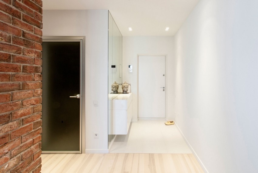 To ensure in modern hallway more space should use light finishing materials and install light furniture