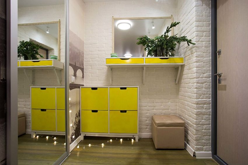 - In the corridor, it is imperative to provide a seating position, which can be used as a pouf, placing it between the mirror and the wardrobe. Thus, it will be possible to create a storage place for small items.
