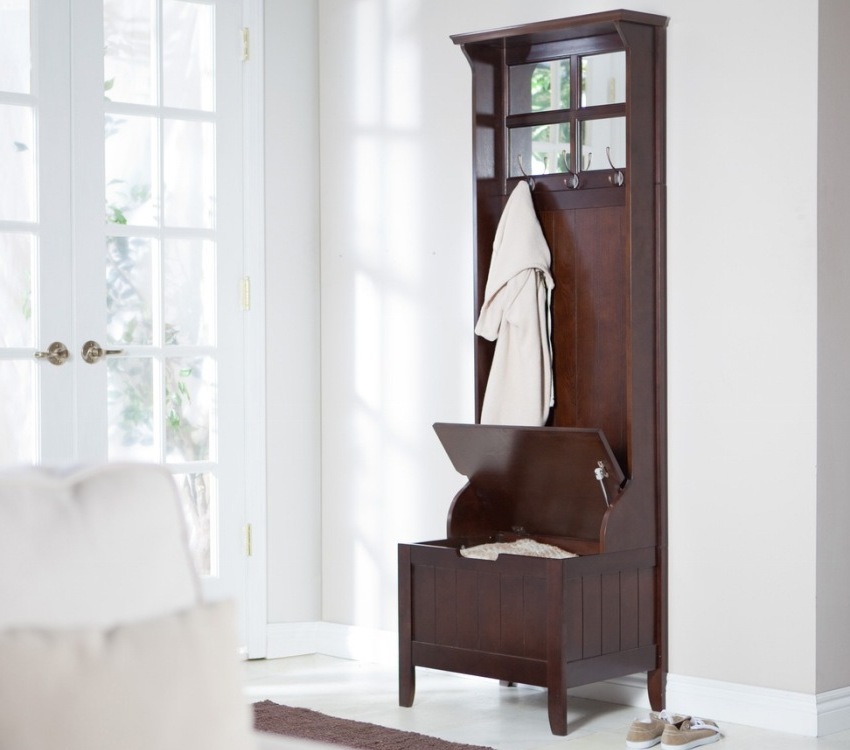 When choosing a cabinet, you should give preference to models with a minimum depth, maximum height and advanced functionality for storing things.