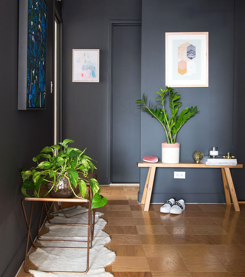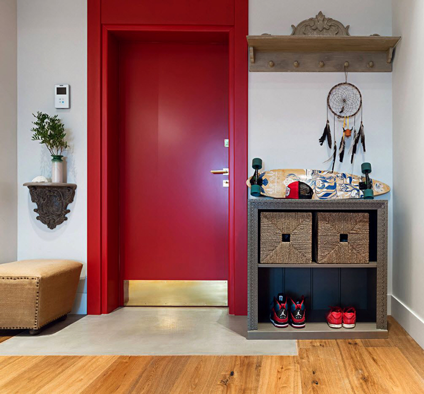 On walls that adjoin smaller corners, decorative elements in the form of paintings and wall lamps should be placed. You can also install small furniture nearby, for example, an ottoman or a compact shoe rack.