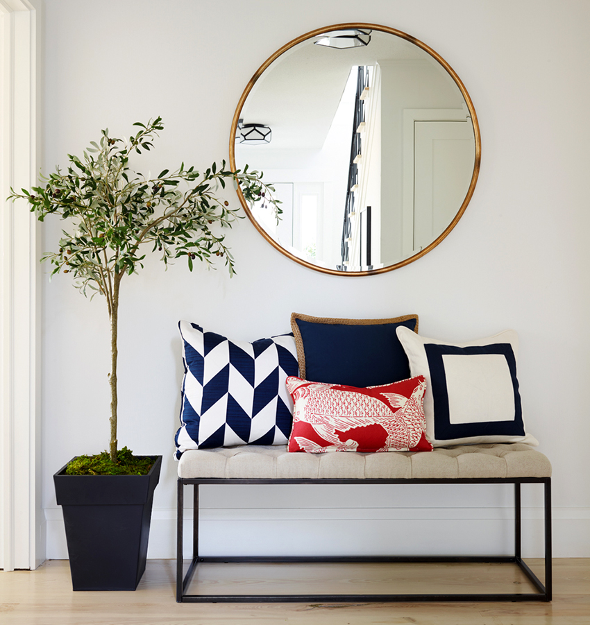 You can make the hallway memorable by adding bright colors to the design. This is best accomplished with spot accents, such as bright furniture or accessories.