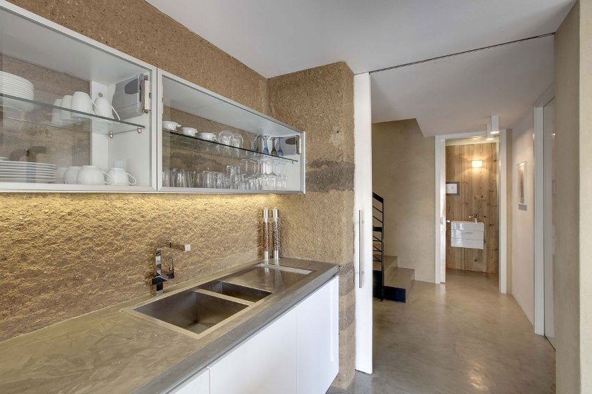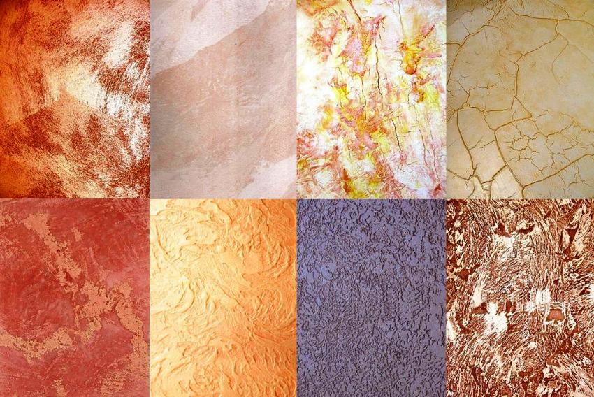 They contain quartz sand and acrylic, lime and special fibers. Additional substances are added to the mixture, which give a decorative effect: mother of pearl, gold and silver powder. Sometimes granules are present that are not affected by the dye. The mixture is applied to the walls with a spatula, and after drying, they begin to rub. In this case, the destruction of the granules occurs. The resulting surface has a scuffed appearance, creating an antiqued effect.