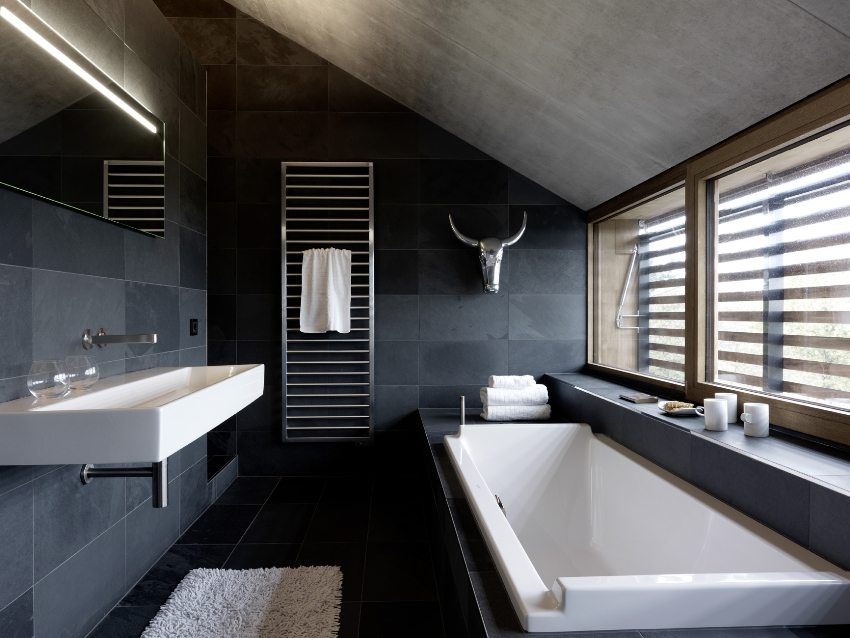 The bathroom in the attic is limited by the ceiling height, so it is impossible to place a shower cabin in it