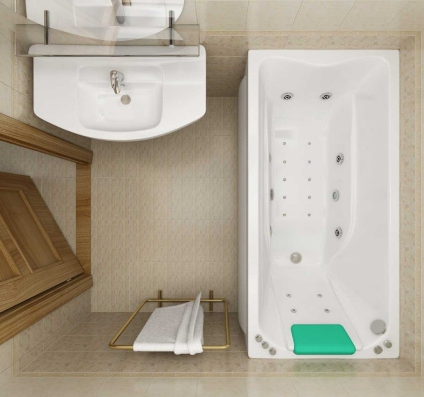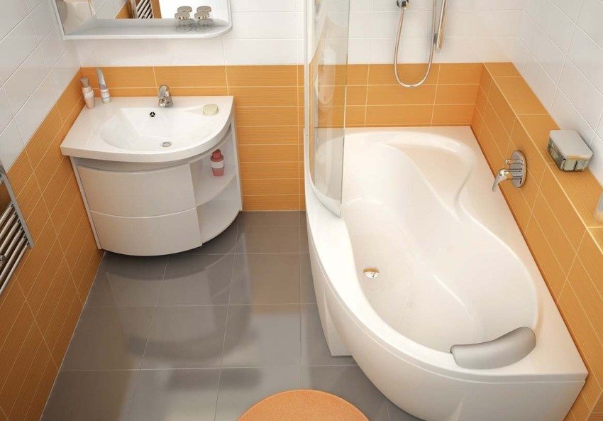 Compactness is the main characteristic of sanitary ware for a small bathroom. To save space, it is better to refuse a bulky bathtub altogether, because it takes up at least a third of the usable space. If the family has fans to soak in hot water, it is worth giving preference to compact corner baths... They fully fulfill their purpose and allow you to carve out additional centimeters of area for other purposes.