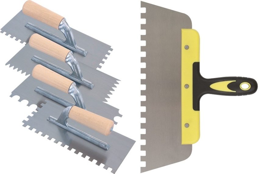 After that, they begin to dilute the glue and lay the tiles. The glue mass is applied to the prepared surface with a simple spatula, and then stretched over the surface with a special notched one. The area to which the mixture is applied must be such that its lining does not take more than 10-15 minutes.