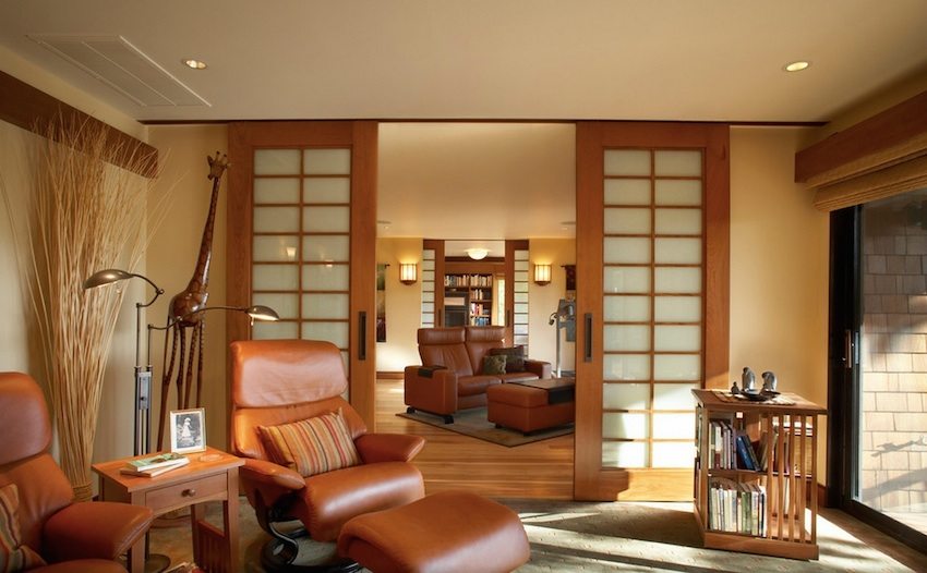 - Interior sliding doors (photo) visually expand the space of the room.
