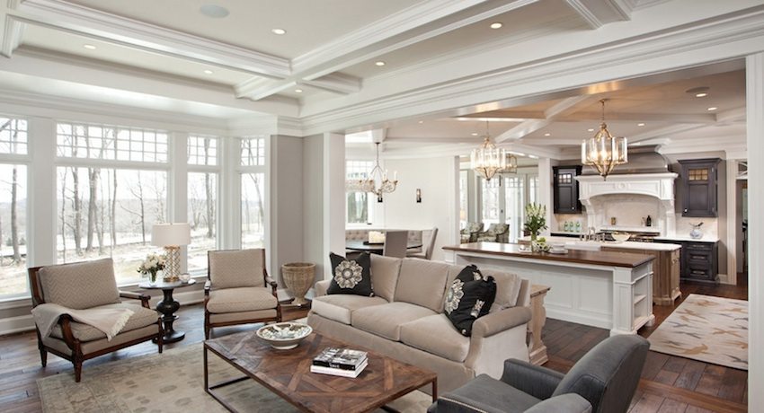 Photos of plasterboard suspended ceilings of any room have signs of one of these styles or a combination of them.