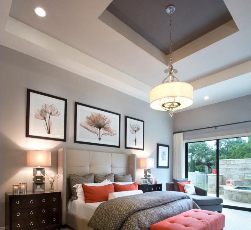 Ceiling suspension systems in such a room can be multi-level with sufficient ceiling height. This will allow you to create a separate area above the bed with its own lighting and design. A feature of plasterboard ceilings for a bedroom, photos of which have certain nuances, is their practicality and attractiveness.