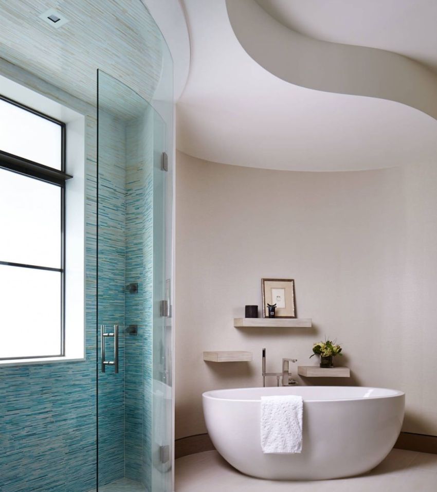 - 1.5 Plasterboard ceiling in the bathroom: photo features