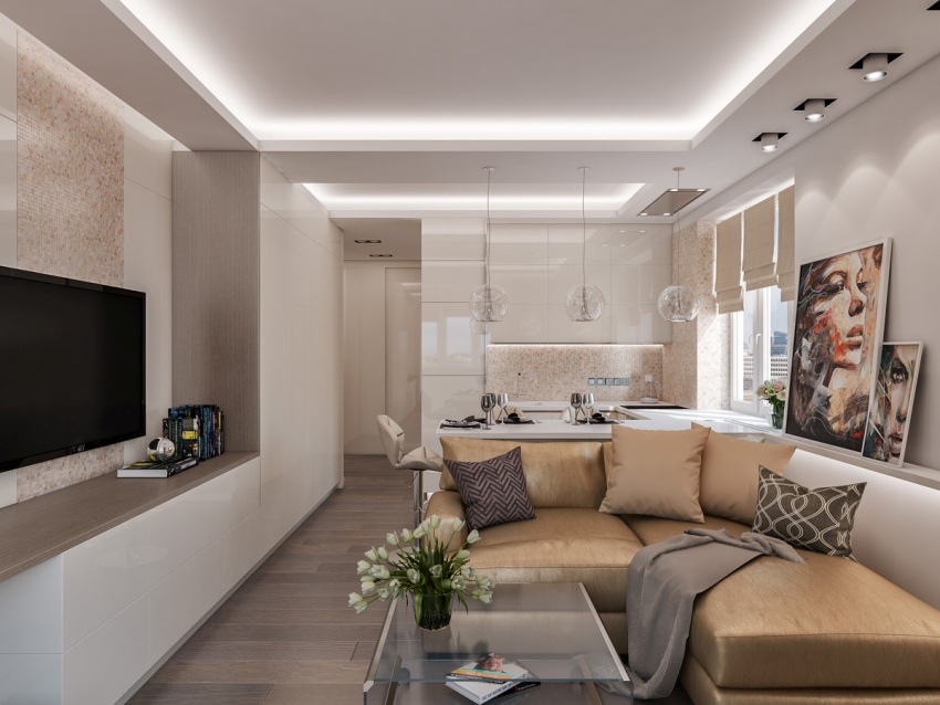 When choosing a style for a studio apartment, designers recommend paying attention to minimalism. This option is the most acceptable and concise, and also contributes to competent zoning.