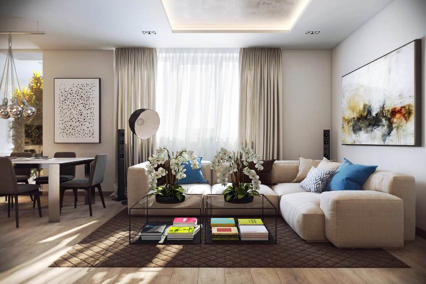 Auxiliary elements are also very important and serve an accentuating function. They can be of any color, harmonize or, conversely, contrast with the tones in which the surfaces of the room are painted. Compliance with the above rules contributes to the competent drawing up of the design of a small apartment. Photo studios will help you choose a stylistic solution, so it is recommended to study them before developing a project.