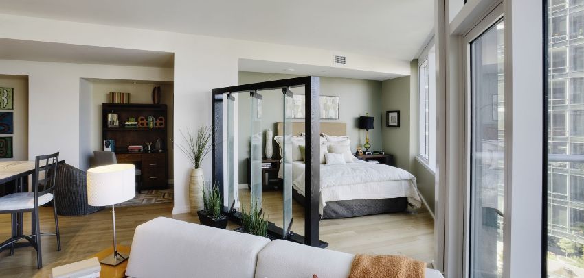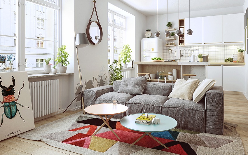 When choosing furniture for a studio apartment, experts recommend abandoning bulky structures. It is best to buy multifunctional and compact furniture that can be transformed if necessary. You can use both a sofa and a bed as a bed, but in the first case, more usable space is saved. In addition, furniture can be used for space zoning.