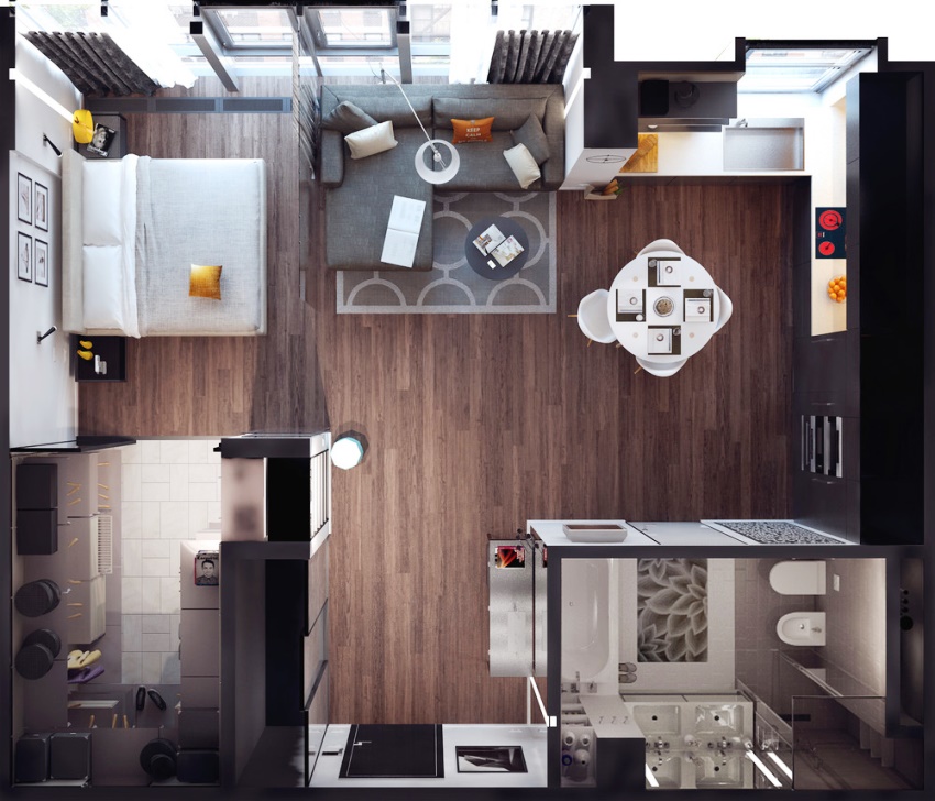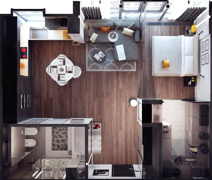 When drawing up a project for a studio apartment, it is important to pay attention to the zoning of the room and the interior concept