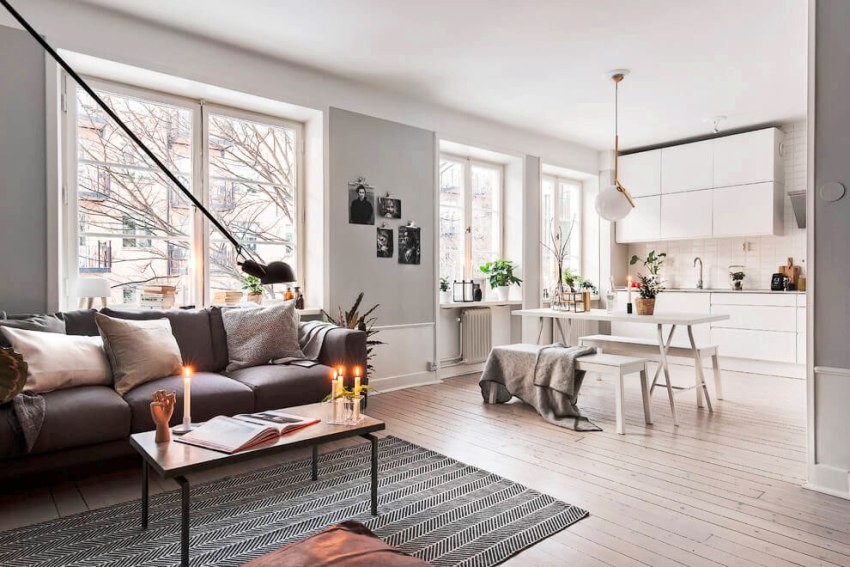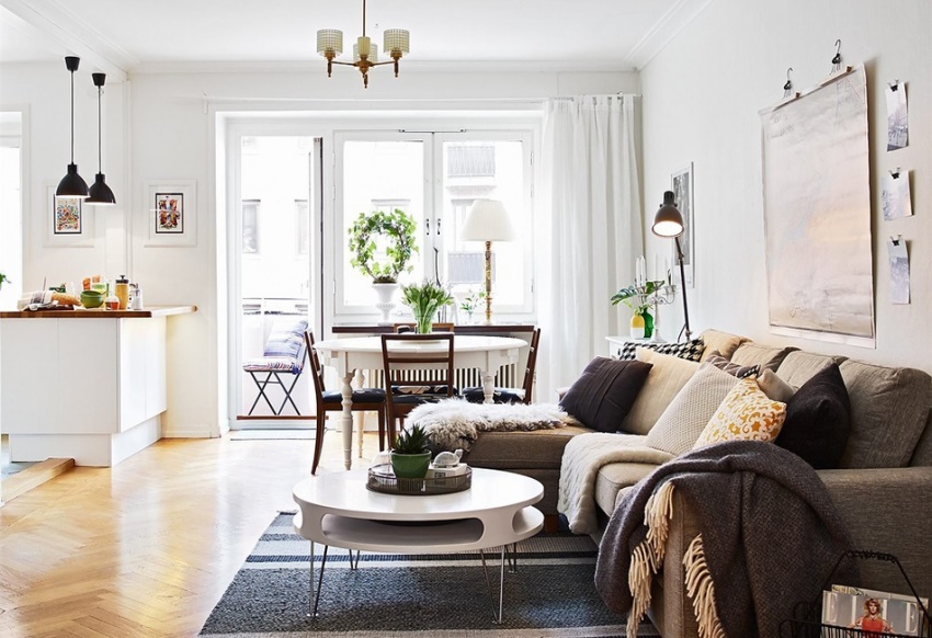 Do not forget about auxiliary decorative elements, which should look organically in the interior of the room. It is important to remember that experts categorically do not recommend oversaturation of the interiors of small apartments with auxiliary details. Photos of small houses in minimalist styles will help you appreciate the benefits of such a solution.