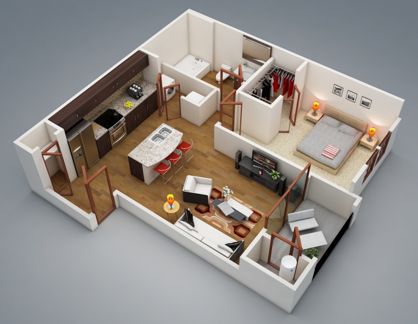 All items, elements interior design apartments get their visual form thanks to three-dimensional modeling technology