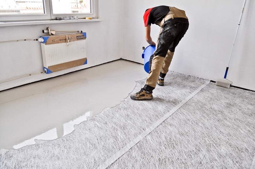 Floor repair in the apartment, it begins with the implementation of a screed, which is used to eliminate significant damage and unevenness of the base relative to the horizon. This is due to backfilling or pouring the floor with a special compound, which forms a perfectly flat surface necessary for further installation of the floor covering. In addition, the screed serves to strengthen the surface of the concrete slab and increase its strength characteristics. Before performing it, it is necessary to create a sound and heat insulation layer. For this, expanded clay is often used, which is laid with a thickness of at least 5 cm. Due to the leveling layer, you can raise the floor level or make a technological slope.