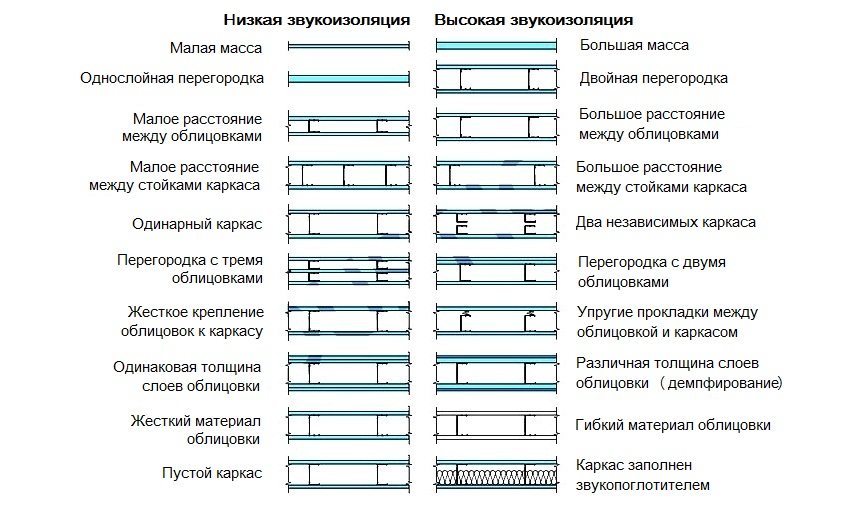Comparison of the level of sound insulation of various structures plasterboard partitions