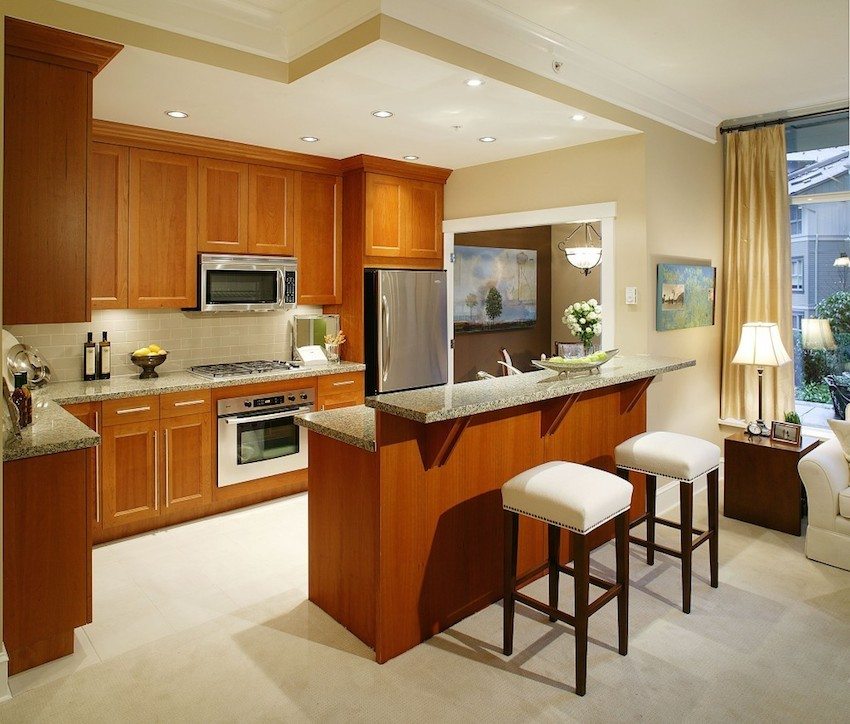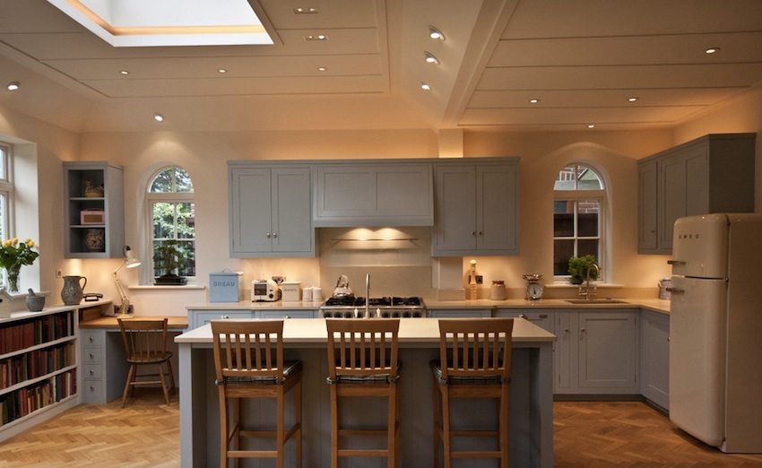 LED lamps on the ceiling in the kitchen