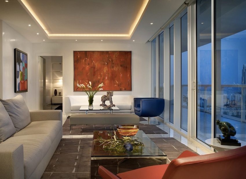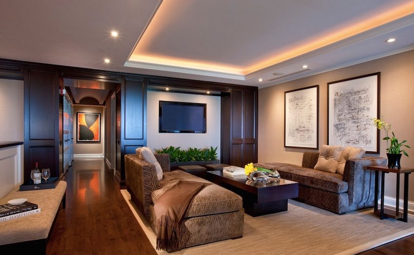 Freedom of choice of luminaires and installation options. The range of lighting devices that are offered on the modern market allows you to use pendant, surface-mounted or recessed luminaires. The installation of point light sources allows you to flexibly choose options for expanding the space, as well as use various methods of decorating rooms using illumination means. A creative, conventionally unlimited approach, judging by the photo of illuminated plasterboard ceilings, makes the room unique and inimitable.