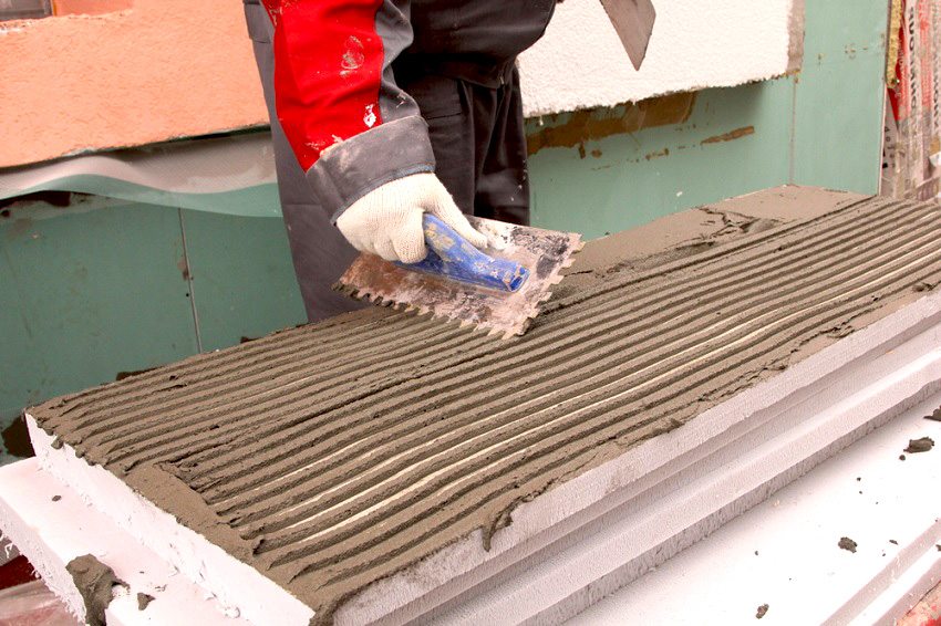 When insulating with the glue method, a thin layer of glue is applied to the prepared walls and ceiling (Sevener, Ceresit ST 85). Then the foam boards are neatly laid. Some experts advise additional reinforcement with self-tapping screws or other fastening tools. This is optional and is up to everyone's discretion. Let the frame dry a little.
