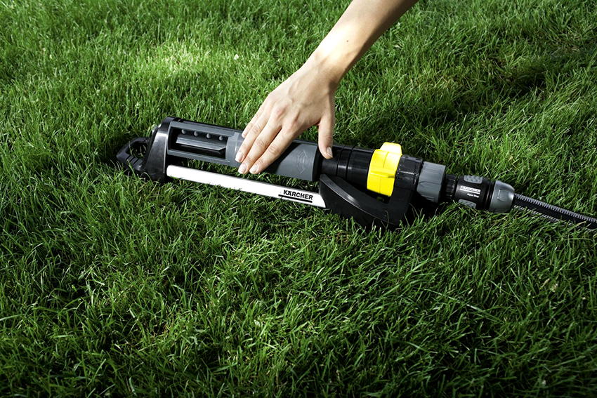 This model belongs to the category of oscillating. Thus, it is customary to use it for irrigation of rectangular areas, the length of which does not exceed 30 m. A Karcher sprinkler of this type is capable of irrigating an area with an area of 190 to 320 m².