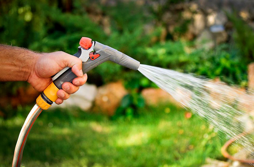 Note! There are many benefits to using a water spray for irrigation. The main one is that moisture is distributed evenly over the area within which this device operates. When watering by hand, gardeners often use a hose that does not spray, resulting in puddles.
