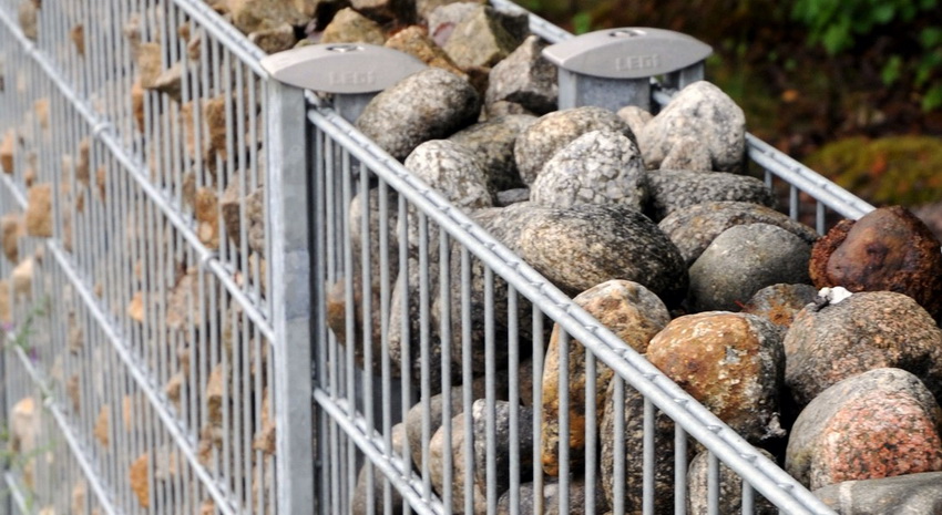 The frame part is fixed on the supports. The result should be 2 mesh boxes. The space between them is filled with stone or brick. The inside of the small frame is filled with soil where the plants are planted. Some manufacturers offer ready-made designs to order, which greatly simplifies the gabion assembly process.