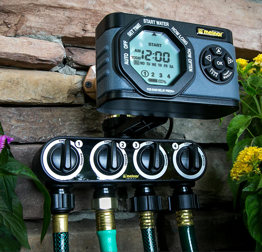 The timer is battery operated. When you change them, all programs on it are saved. The device may be equipped with the function meter for water... A distinction is made between mechanical and electronic timers. The first option works on a spring, providing continuous watering for up to 24 hours. The mode correction is made manually. Any action cannot be programmed indefinitely. Such a device can be used for small areas where the irrigation process is constantly monitored by the owner.