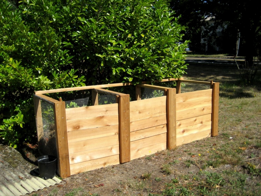 A garden composter may well be presented as a large box, divided into several sections. Usually two or three compartments are made, but experts strongly recommend stopping at the option with three sections, since each of them has its own purpose: the first serves for laying waste, the second is intended for waste ripening, and the third contains ready-made compost.