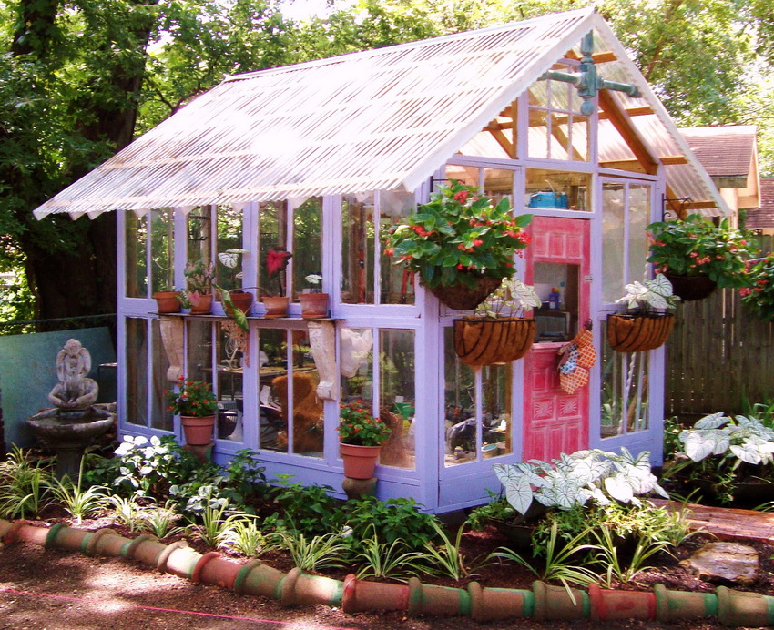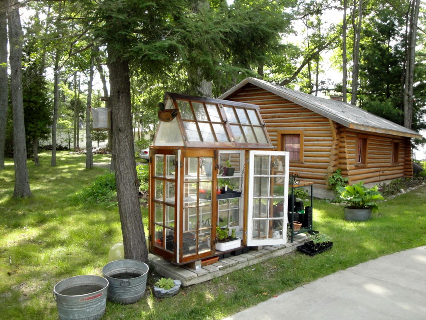 Another option to save money and make a greenhouse yourself from scrap materials is to use old window frames for this purpose. If there are enough of them, you can make a completely transparent design with an opening top. If there are not enough frames, you can build a structure near the building, using its wall as one of the sides. It is important to ensure that the top frame is sloped, otherwise rainwater will constantly accumulate on the roof.