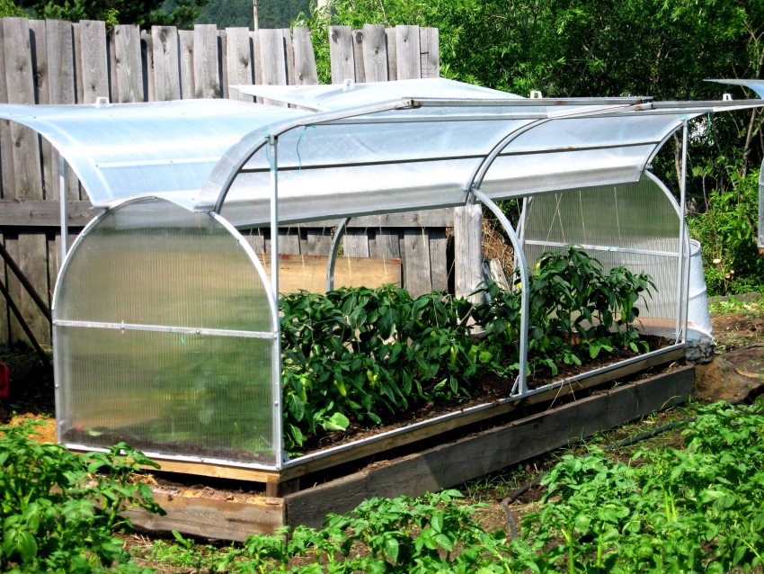 This type of covered warm bed is ideal for early cultivation of strawberries, strawberries, herbs and vegetables. In order for the plants to receive a sufficient amount of oxygen, the agrarian recommends planting them in a checkerboard pattern. Eggplants, cabbage and other varieties of large crops are planted in two rows, while smaller plants such as onions or radishes are planted in four rows.