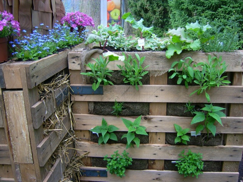 Vertical structures save space and are suitable for growing flowers, strawberries, herbs, vegetables