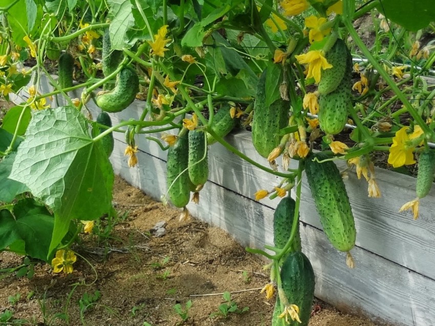 Note! The construction of vertical cucumber beds is also welcomed by many summer residents. Most of the designs are made by analogy with strawberry products. Since cucumbers belong to the category of climbing crops, the garden bed should be supplemented with supports to which the plants will cling.