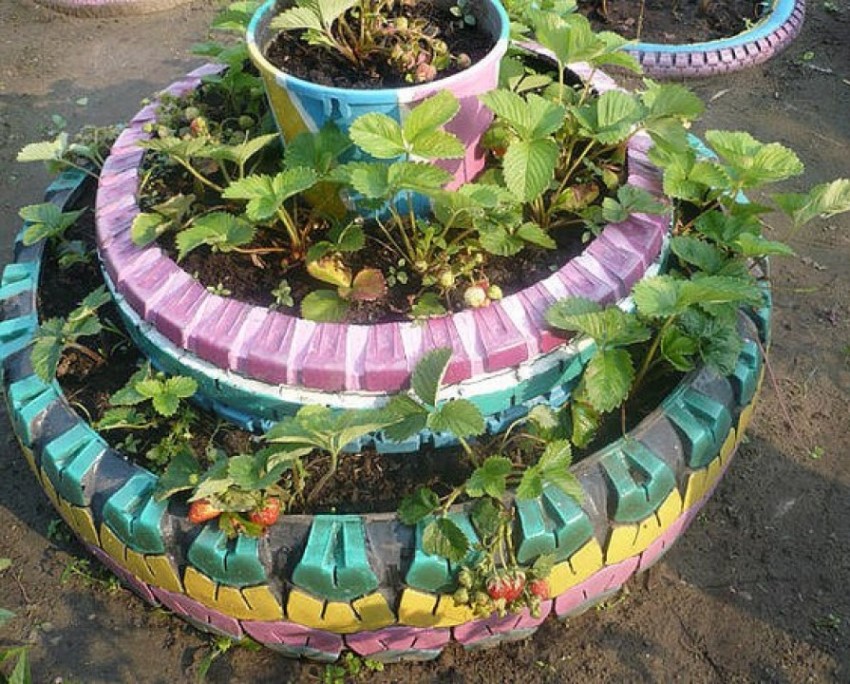 Manufacturing technology and photos of vertical beds for strawberries with their own hands from tires
