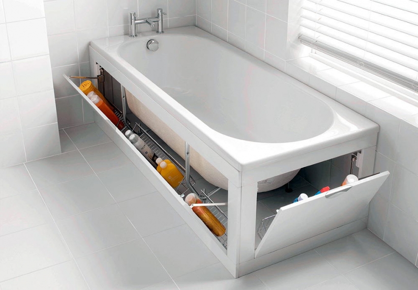 Note!The device must be installed on a special frame or a reinforced frame, which will reduce the likelihood of damage to the device under significant loads. In this case, it will be appropriate to mount a screen under the bath, the size of which is selected depending on the dimensions of the product and the height of the base.