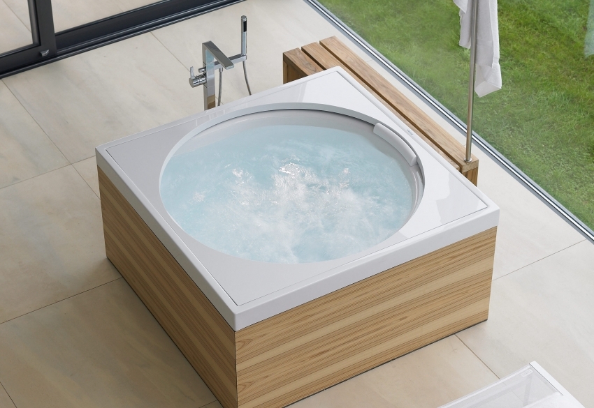 Useful advice!For rectangular rooms, it is appropriate to install the same bath, placing it along the wall, and for square rooms it is better to choose an angular model, which can be approached from either side.