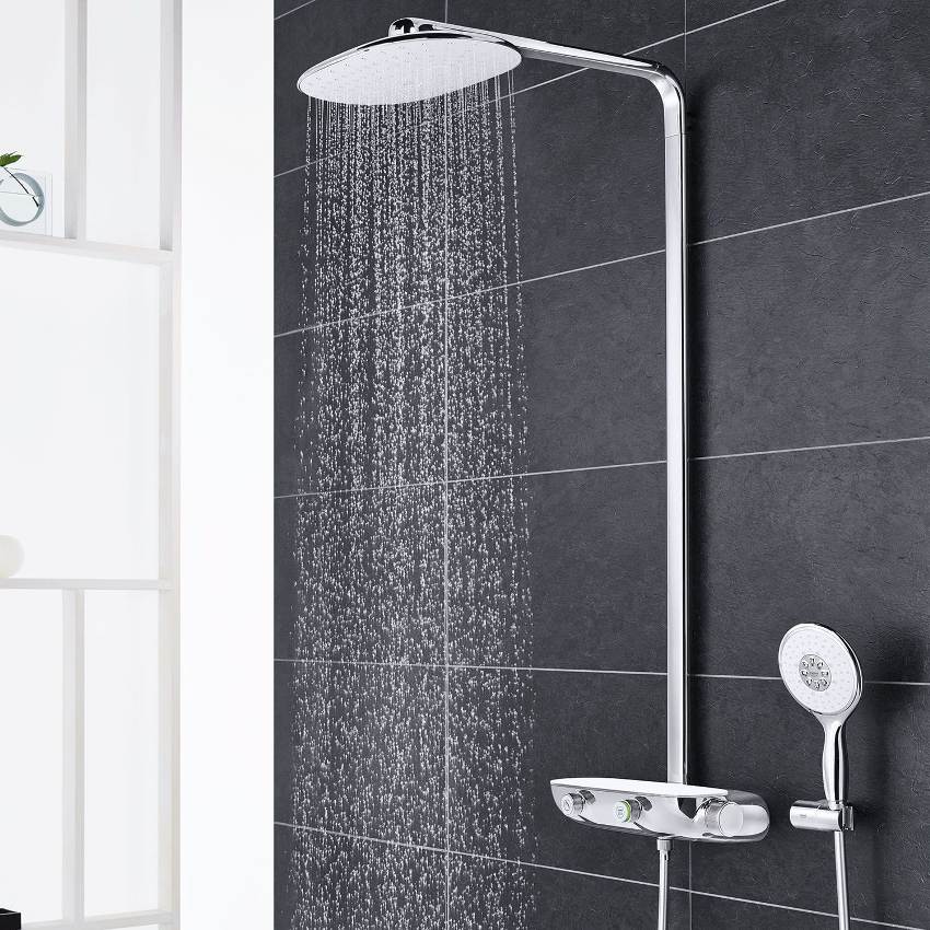A rain shower will be a unique way to recuperate after a hard day at work. But only if the system is correctly selected and installed. Proper care will ensure that water flows freely through the numerous nozzles, and it will fall down in a continuous drip stream, giving a pleasant feeling of freshness.