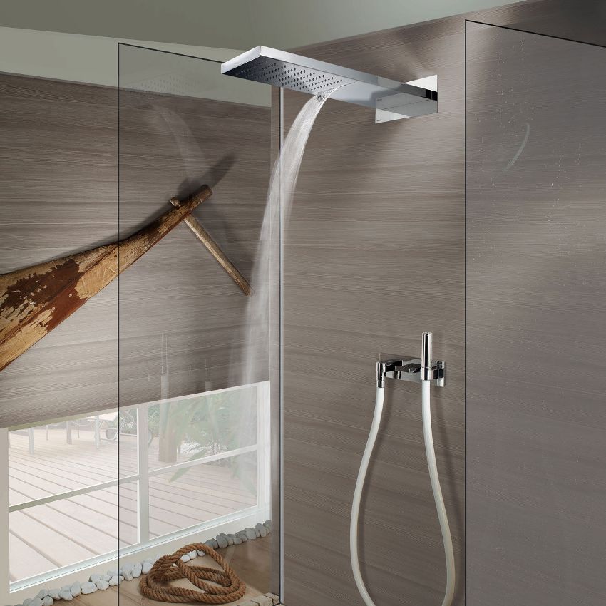 Helpful advice! Before purchasing an exclusive design shower system, you need to be sure that the thickness of the wall will allow you to hide the necessary communications in it.
