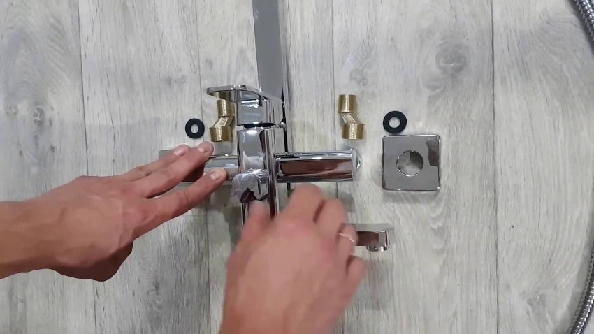 Installation is performed as follows. Installation begins with a mixer. The pipes for hot and cold water must be at the same level, otherwise the rack will be installed crookedly. The correct position of the mixer itself is ensured by the bar that comes with the shower set. The mixer is connected using corners that are attached to the bar with screws. Further, the mixer is connected to the pipes by means of threaded parts. A sealing winding is required for the thread.