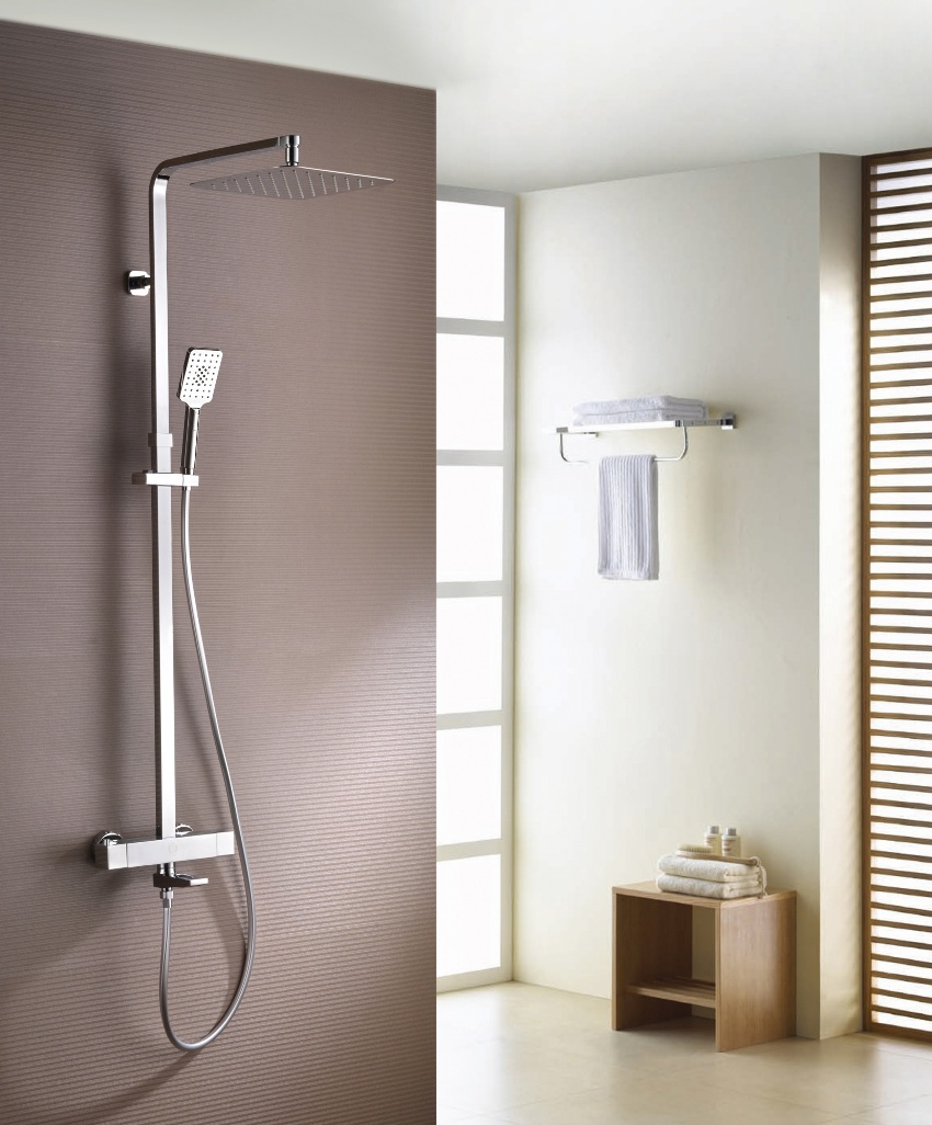 Modern shower racks with thermostats are popular, in which the set water temperature is automatically regulated and maintained throughout the entire duration of the water procedure. The thermostat is installed in the mixer, it reacts to any changes in both pressure and water temperature.