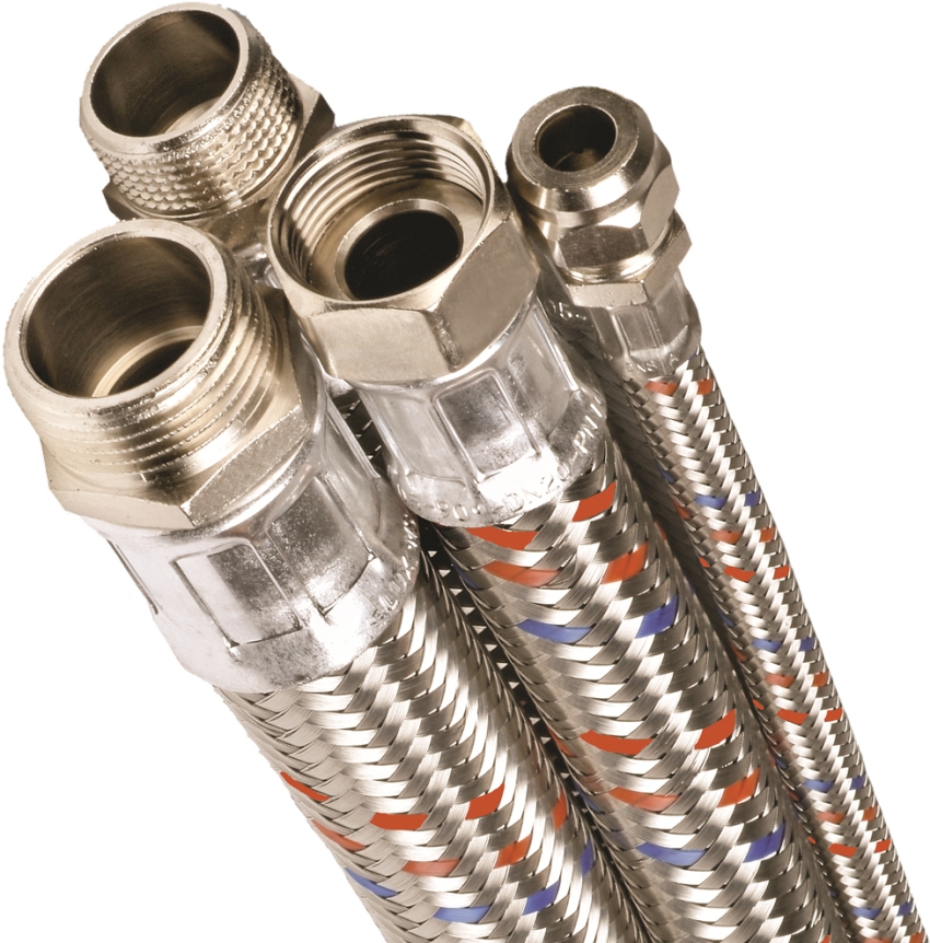 Flexible hose is a metal braided rubber hose equipped with connectors on both sides