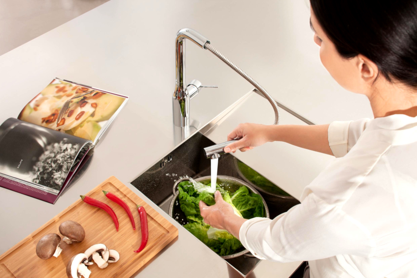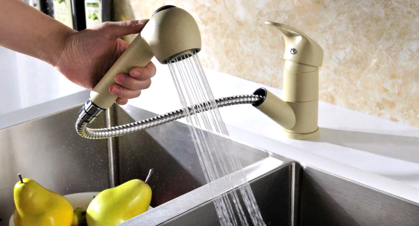 To solve all of the above problems, a shower mixer with a pull-out spray was developed for the kitchen. The advent of this design made it possible to direct the flow to any desired place and to fill vessels with water even outside the sink.