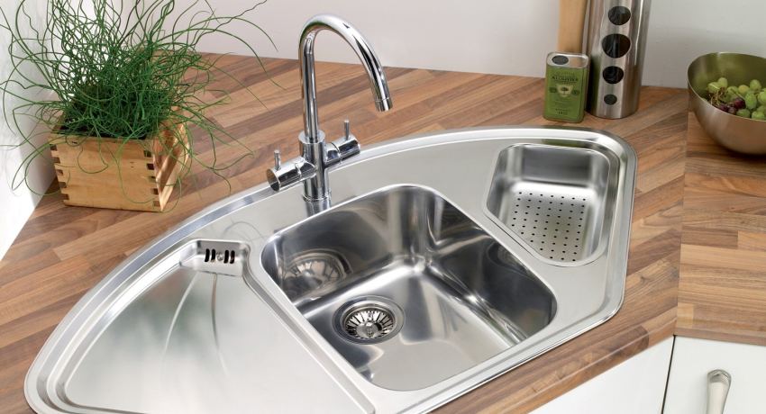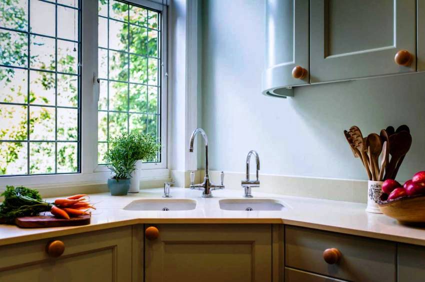 If the kitchen is not large enough, then it will be appropriate to think about installing a corner sink