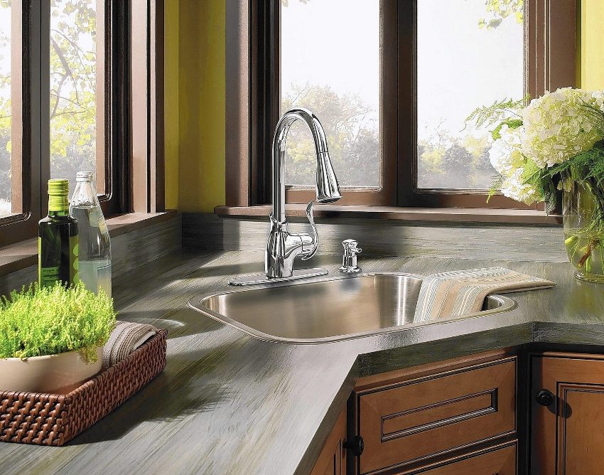 Another advantage of stainless steel sinks is their versatility. They have a simple design and are combined with any options for the interior of the kitchen. Stainless steel is resistant to corrosion. Of the disadvantages of such sinks, it is worth noting their noise. Corner sinks in the stainless steel kitchen are also distinguished by their ease of installation, and therefore it will not be difficult to install them yourself.