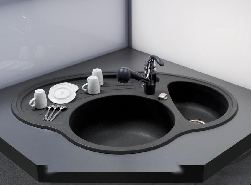The disadvantage of corner sinks is the specificity of their location, because washing dishes while standing in the corner may not be convenient